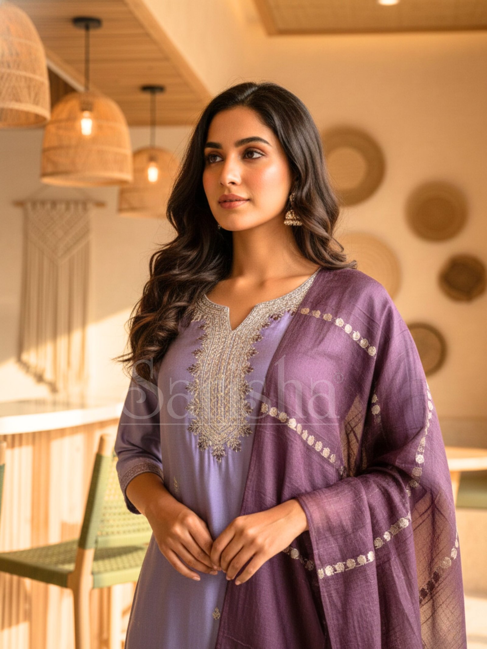Neckline: Stylish traditional neckline