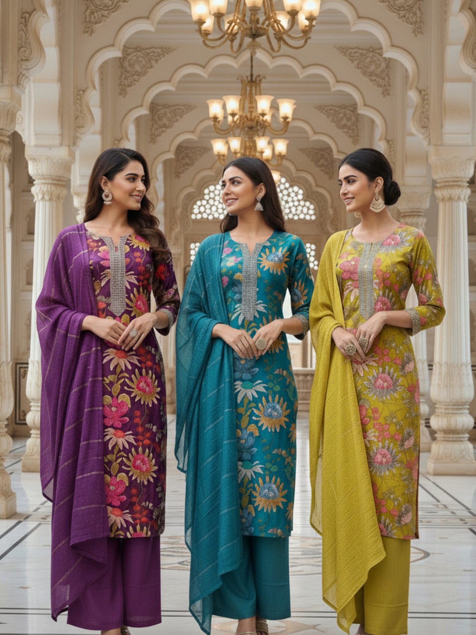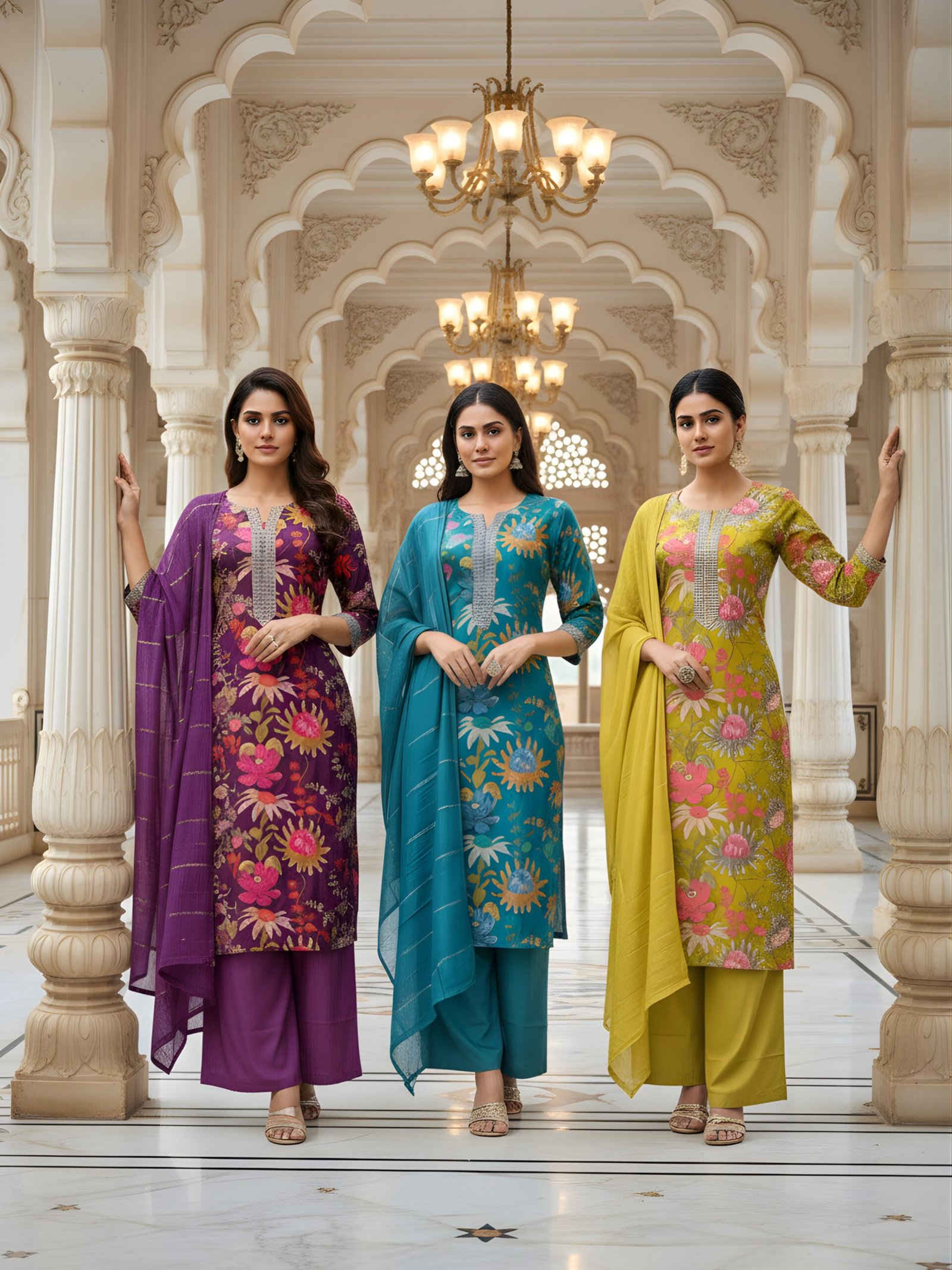 Set Includes: Kurta + Palazzo + Dupatta (3-piece set)